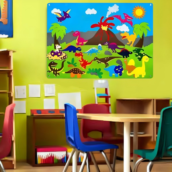 Djeca mogu stvarati vlastite priče koristeći teme ŠKOLA i DINOSAURI. Uklonjive naljepnice mogu se lako premjestiti, dopuštajući djeci da svaki put mijenjaju scene i izmišljaju nove avanture, održavajući njihovu kreativnost i čineći igru uzbudljivijom.