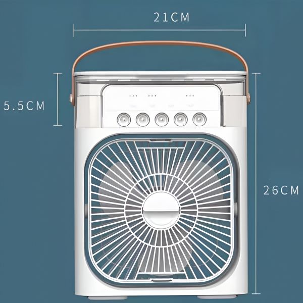Sa spremnikom za vodu kapaciteta 600 ml, ovaj prijenosni klima uređaj osigurava produženo hlađenje i ovlaživanje, savršeno za sate korištenja bez čestih dopuna.