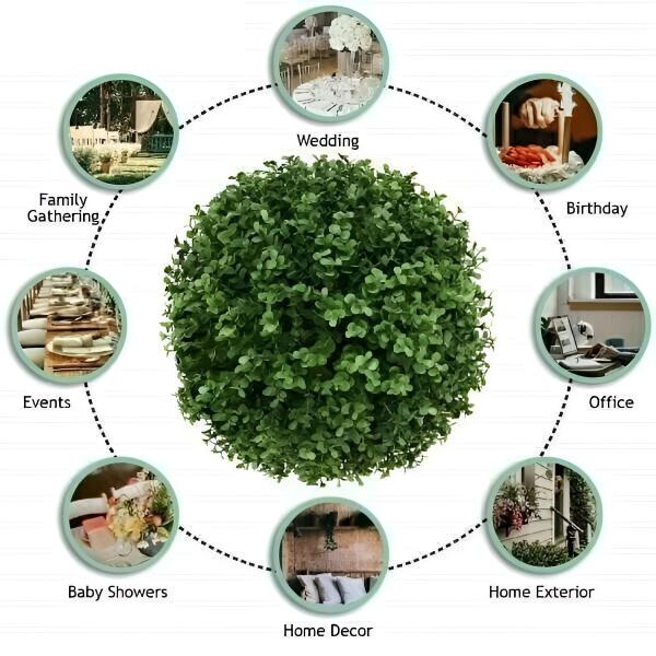 Trebate brzo ažuriranje svog prostora? Postavljanje ovog umjetnog bilja ne može biti jednostavnije! Samo pričvrstite kopče i spojnice kako biste ih sigurno postavili. Savršene su za unutarnju i vanjsku upotrebu, a ako se lopta malo stisne tijekom transporta, jednostavno je pustite da se prozrači kako bi povratila svoj oblik.